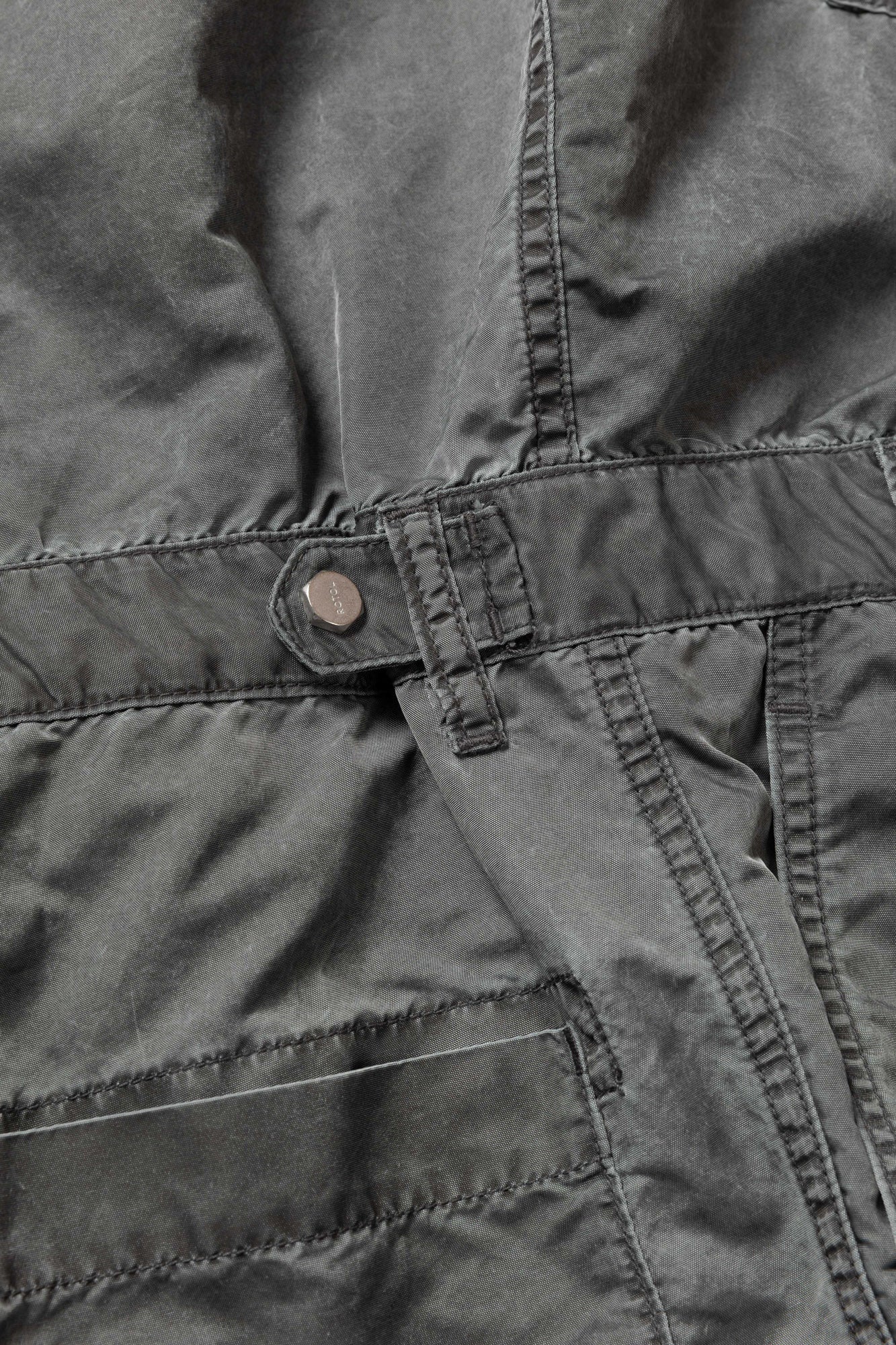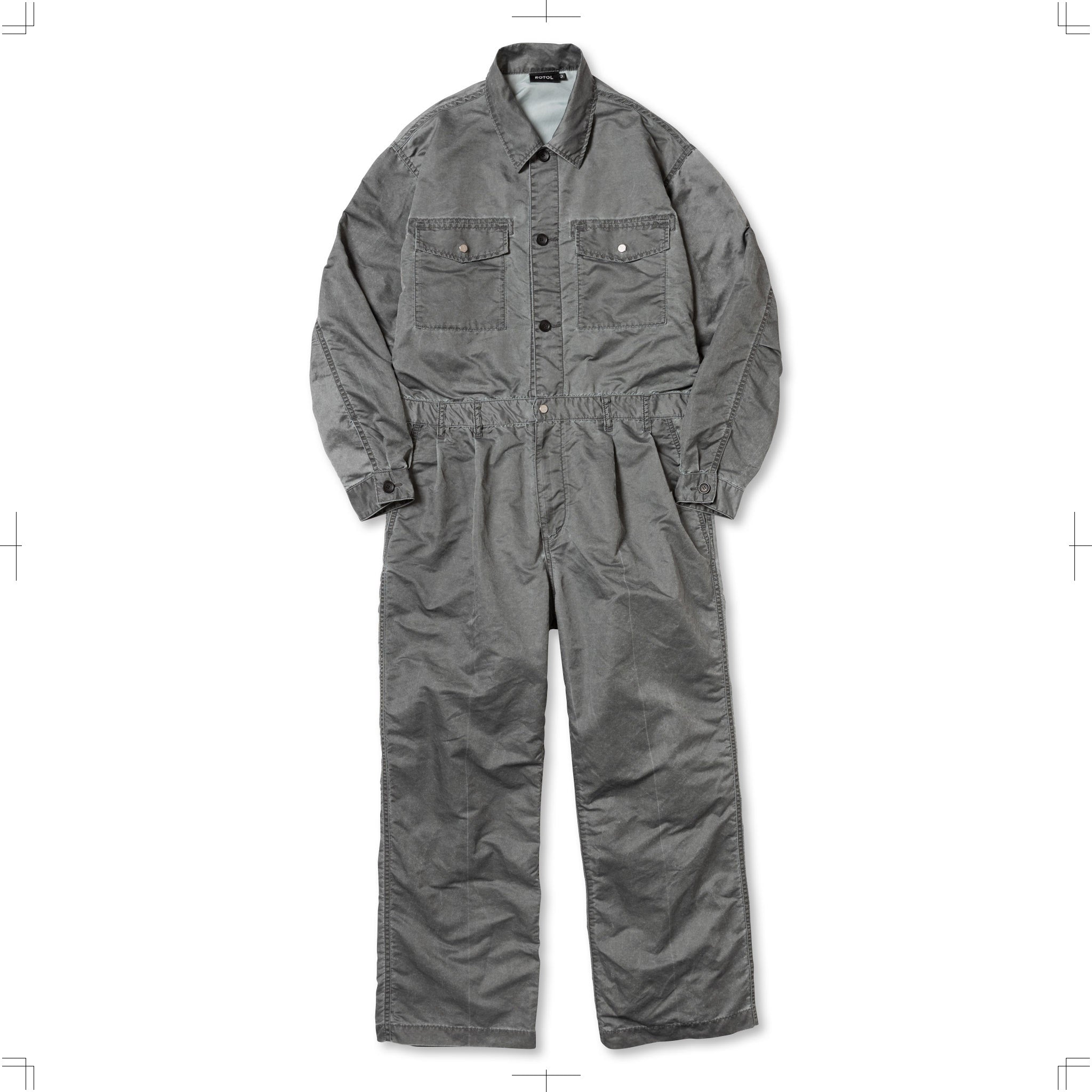 An all-in-one regularly released by ROTOL. Made from nylon oxford fabric with a pigment print, the product finishing creates a stone-like texture and puckering effect. The chest features a flap pocket, and the waist is designed with two tucks and belt loops. Due to the product finishing, there may be variations in damage and individual differences.