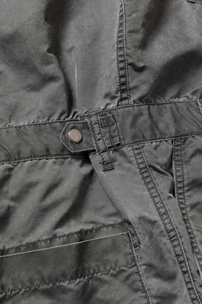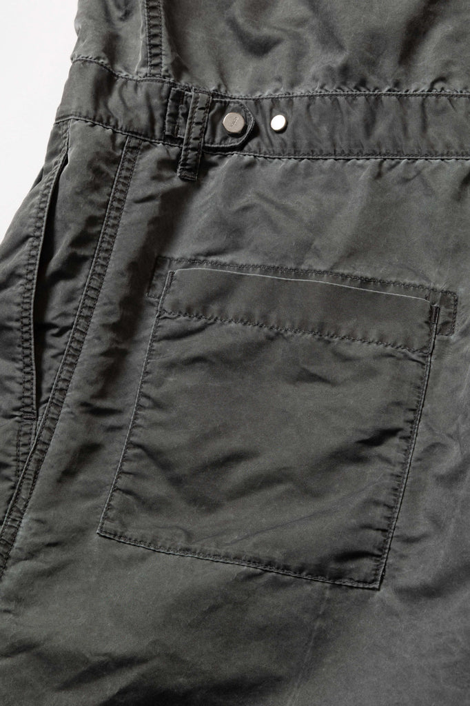 定期的にリリースしているオールインワン。ナイロンオックスに顔料プリントを施し、製品加工により石のような質感とパッカリングを表現。胸にはフラップポケットを配し、ウエスト部は2タック仕様でベルトループ付き。製品加工のため、ダメージや個体差があります。