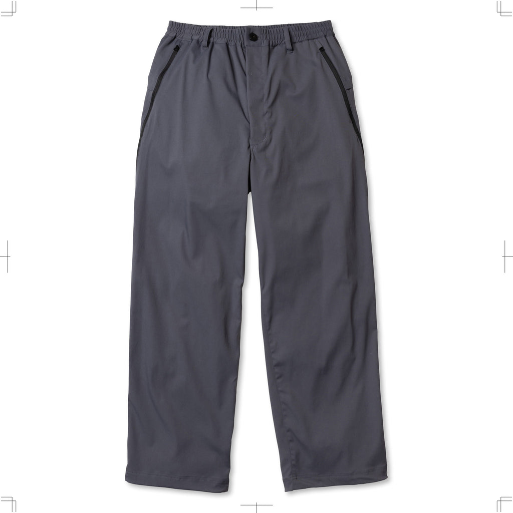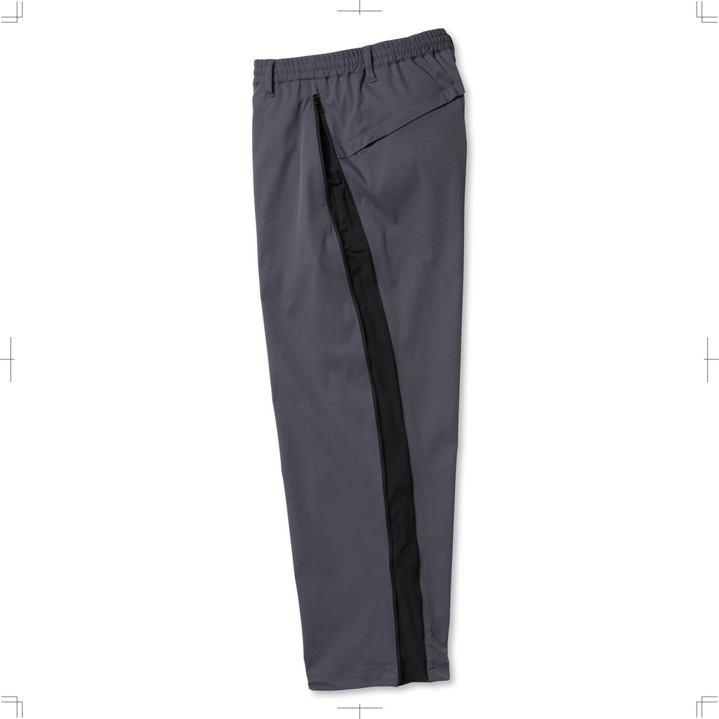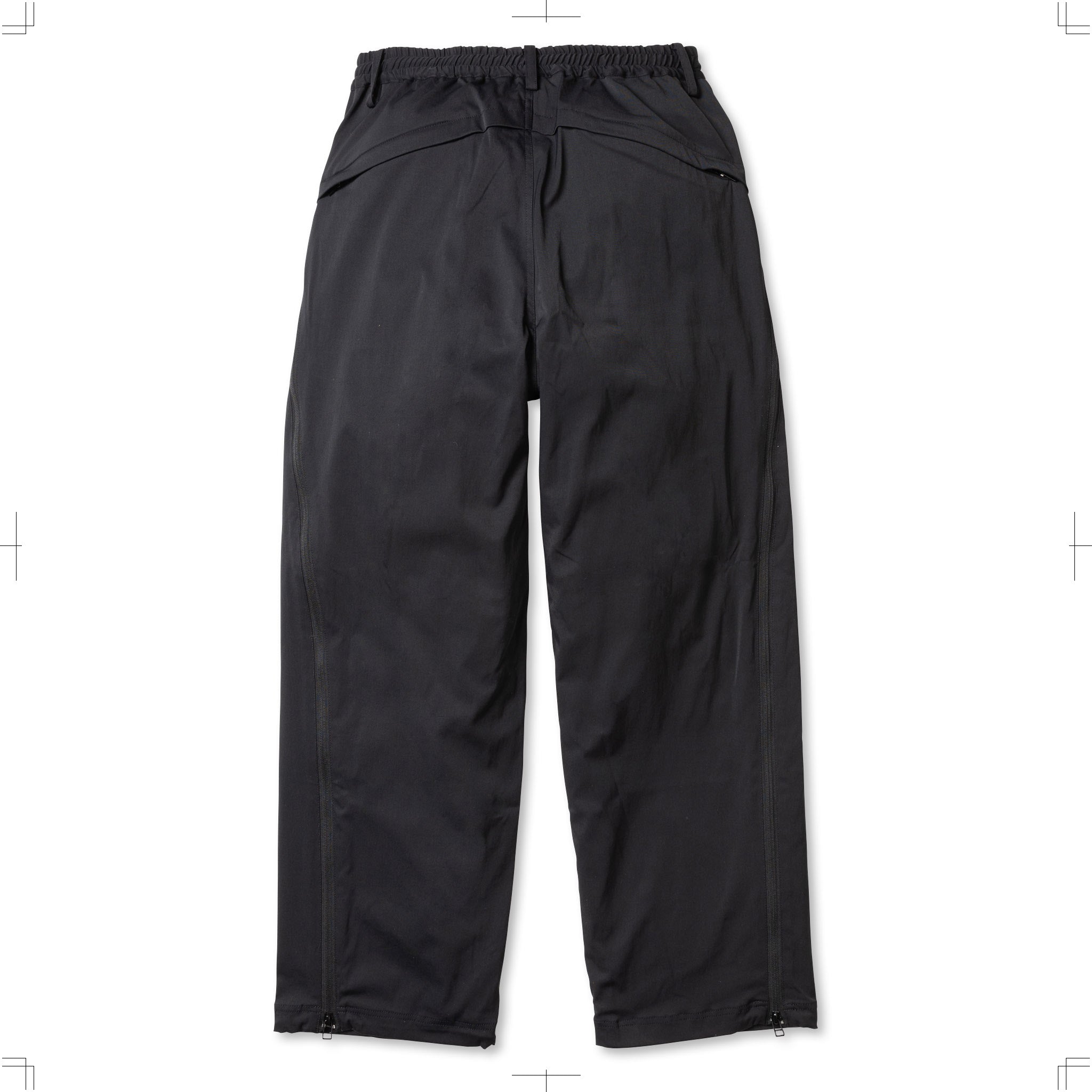 A warm-up pants made from stretch twill fabric using durable CORDURA fibers. In addition to excellent abrasion resistance, the material is also pill-resistant and washable, offering both structure and flexibility with its stretch nylon composition. The zippers on both sides allow for silhouette adjustments. The waistband features elastic, drawstrings, and belt loops. The hem is equipped with a drawcord for further silhouette adjustments.