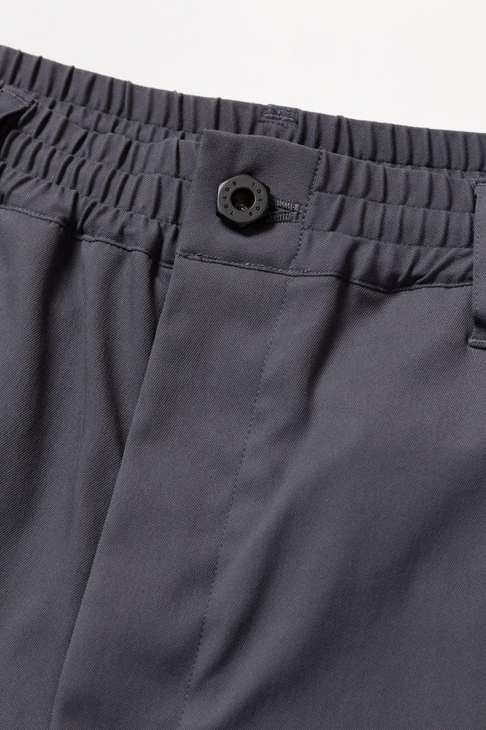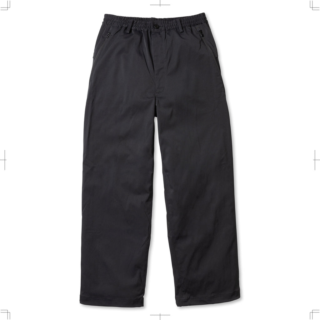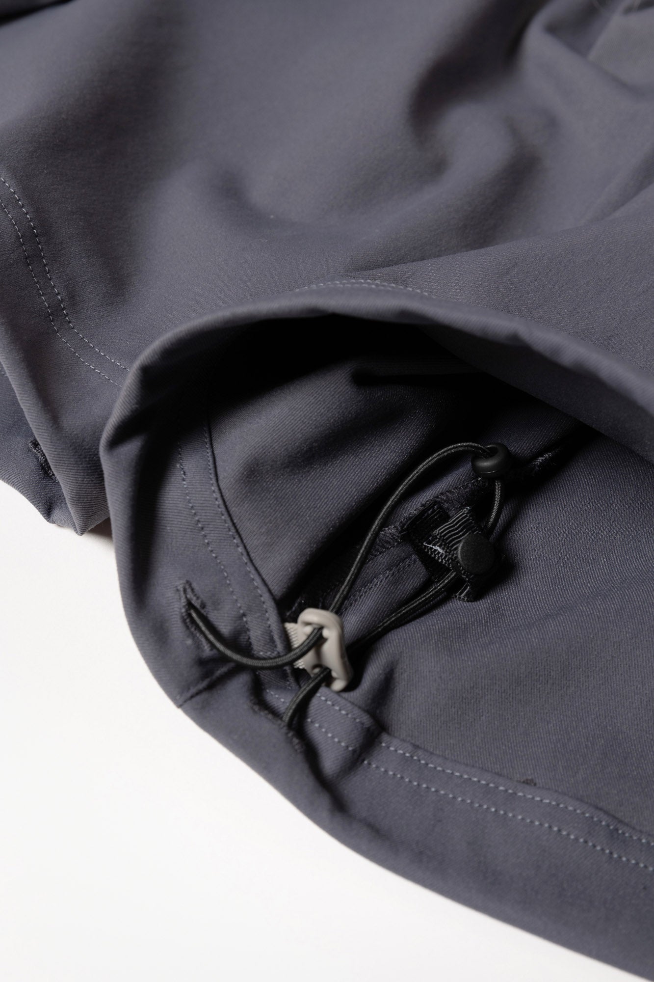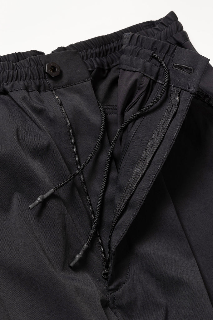 A warm-up pants made from stretch twill fabric using durable CORDURA fibers. In addition to excellent abrasion resistance, the material is also pill-resistant and washable, offering both structure and flexibility with its stretch nylon composition. The zippers on both sides allow for silhouette adjustments. The waistband features elastic, drawstrings, and belt loops. The hem is equipped with a drawcord for further silhouette adjustments.