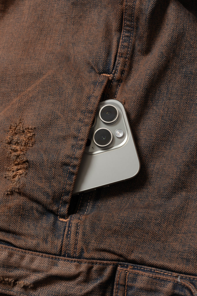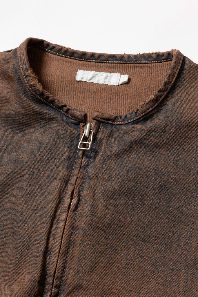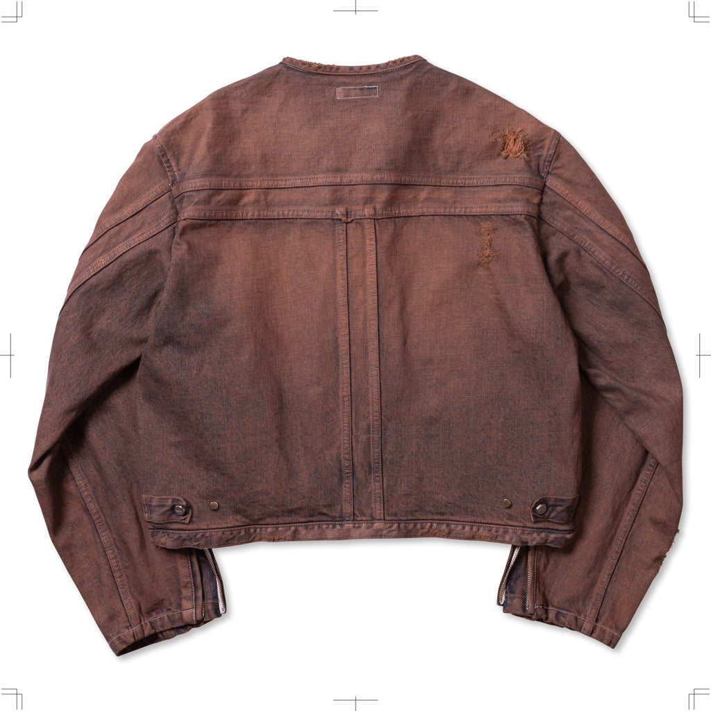 A denim jacket based on a single riders design. The front is finished with a minimalistic design, while the back features a double T-back switch for a rugged look. Made from thick 13oz denim. Due to the product finishing, there may be variations in each piece.