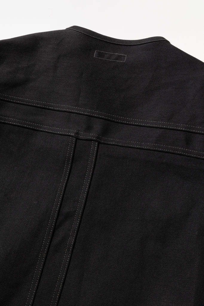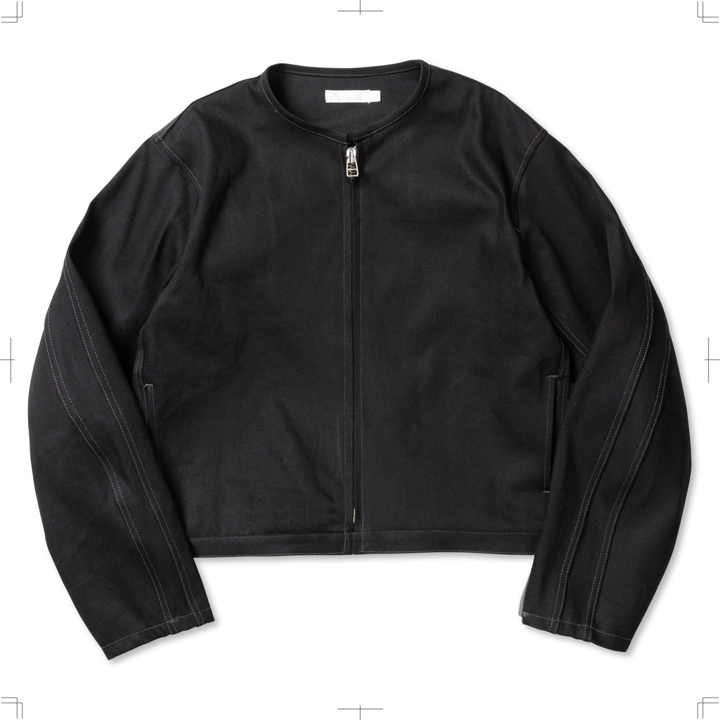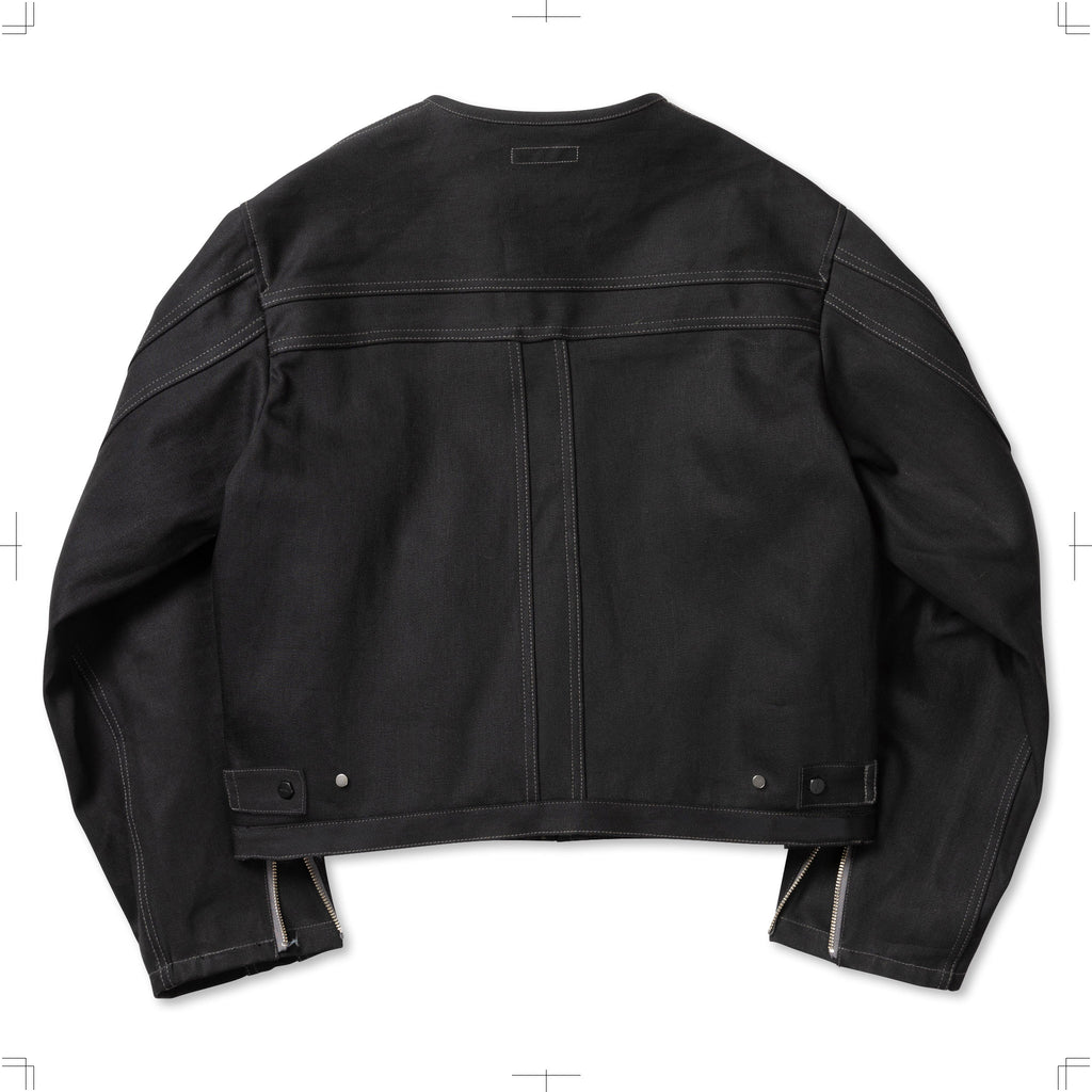 シングルライダースをベースにしたデニムジャケット。前面はミニマルなデザインに仕上げ、背面には2重のTバック切り替えを施して無骨な印象に落とし込んでいる。素材には厚みのある13ozデニムを採用。リジットのため、洗濯により縮みが発生します。洗い後のサイズは加工製品の寸法を参考にしてください。