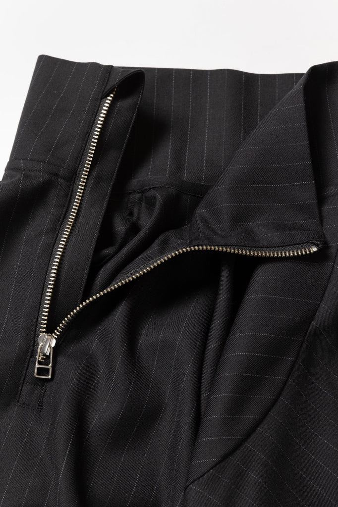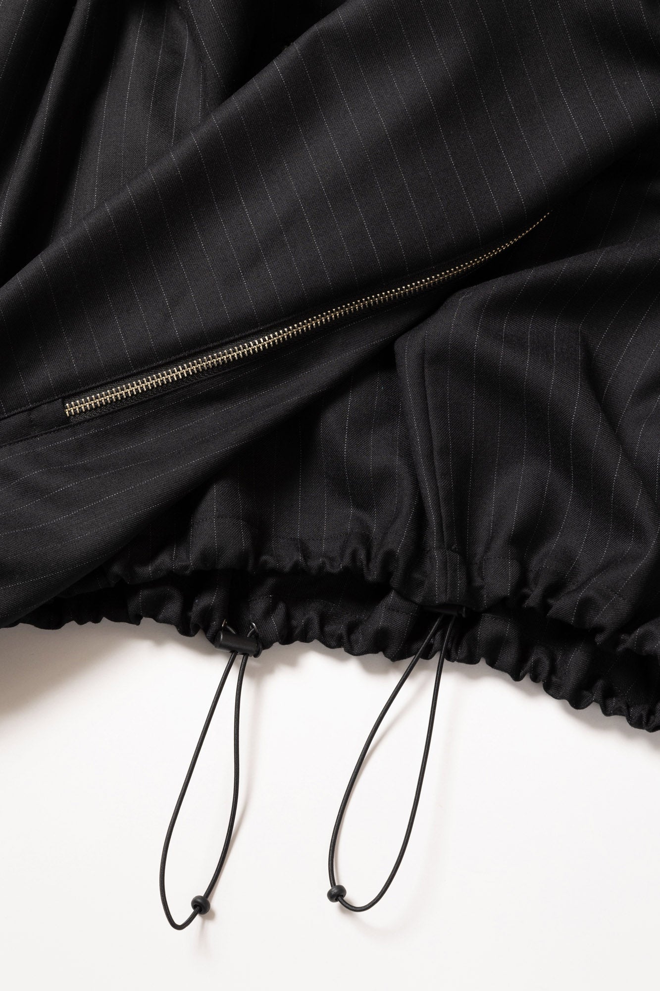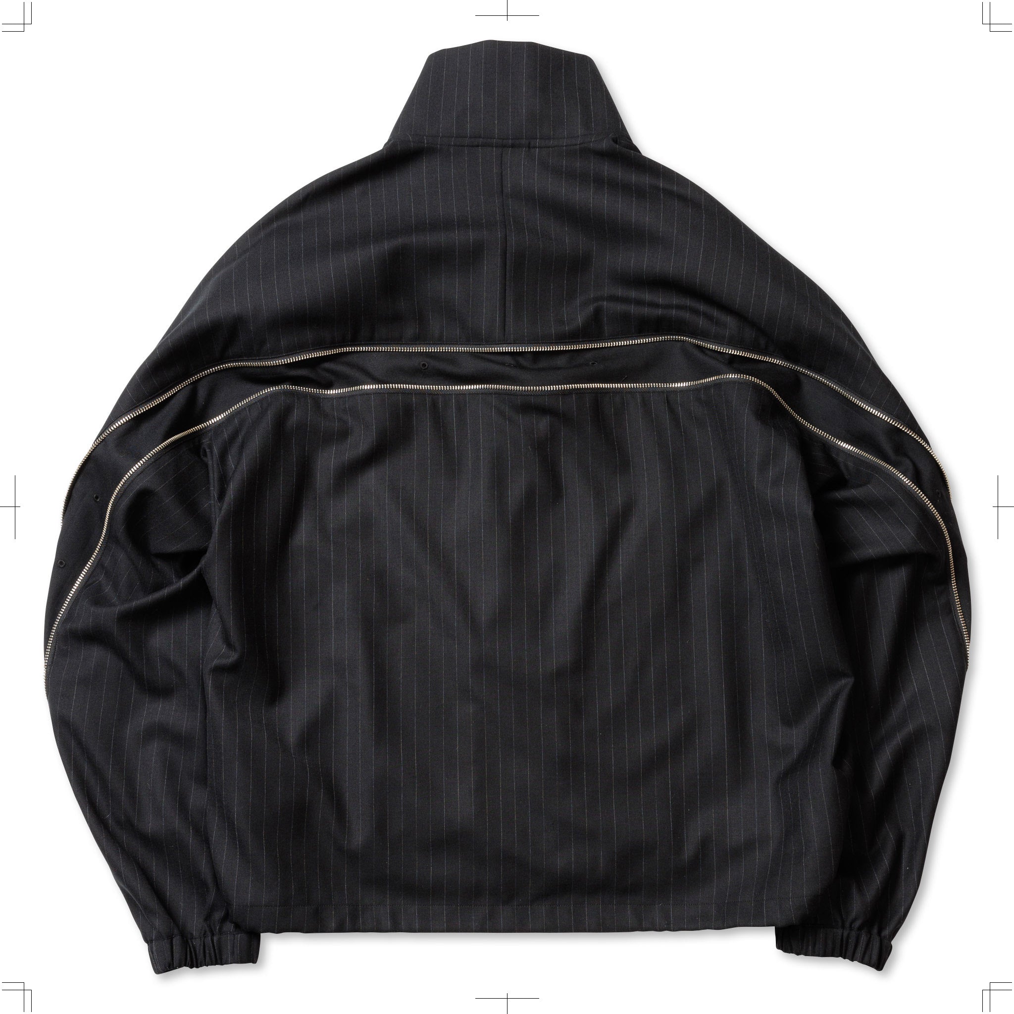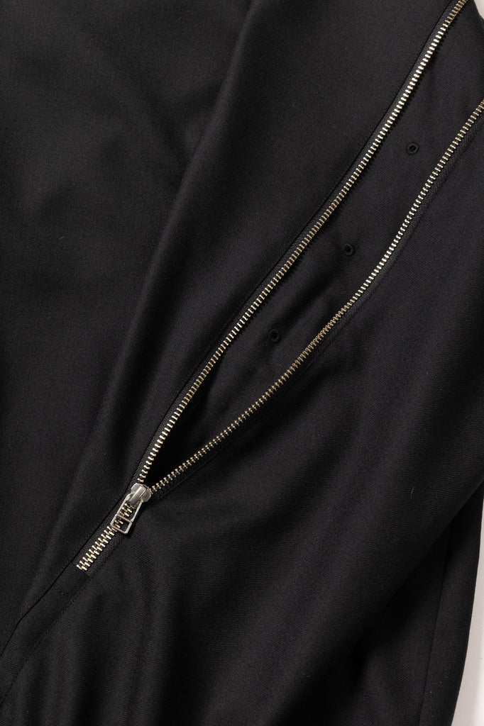 SUPER100Sのウールサージを使用したリラックスフィットのハーフジップブルゾン。背中にはシルエットを変化させるジップを配し、腰にはジップポケットを設置。裾にはドローコードを備えている。