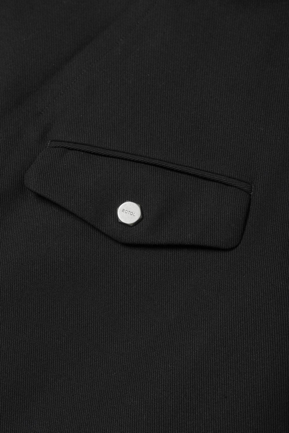 胸ポケットにはアイコンの六角ドットボタンをあしらい、袖口は本切羽仕様。
