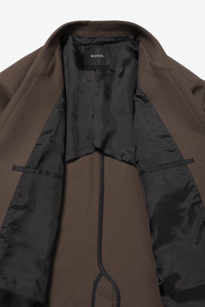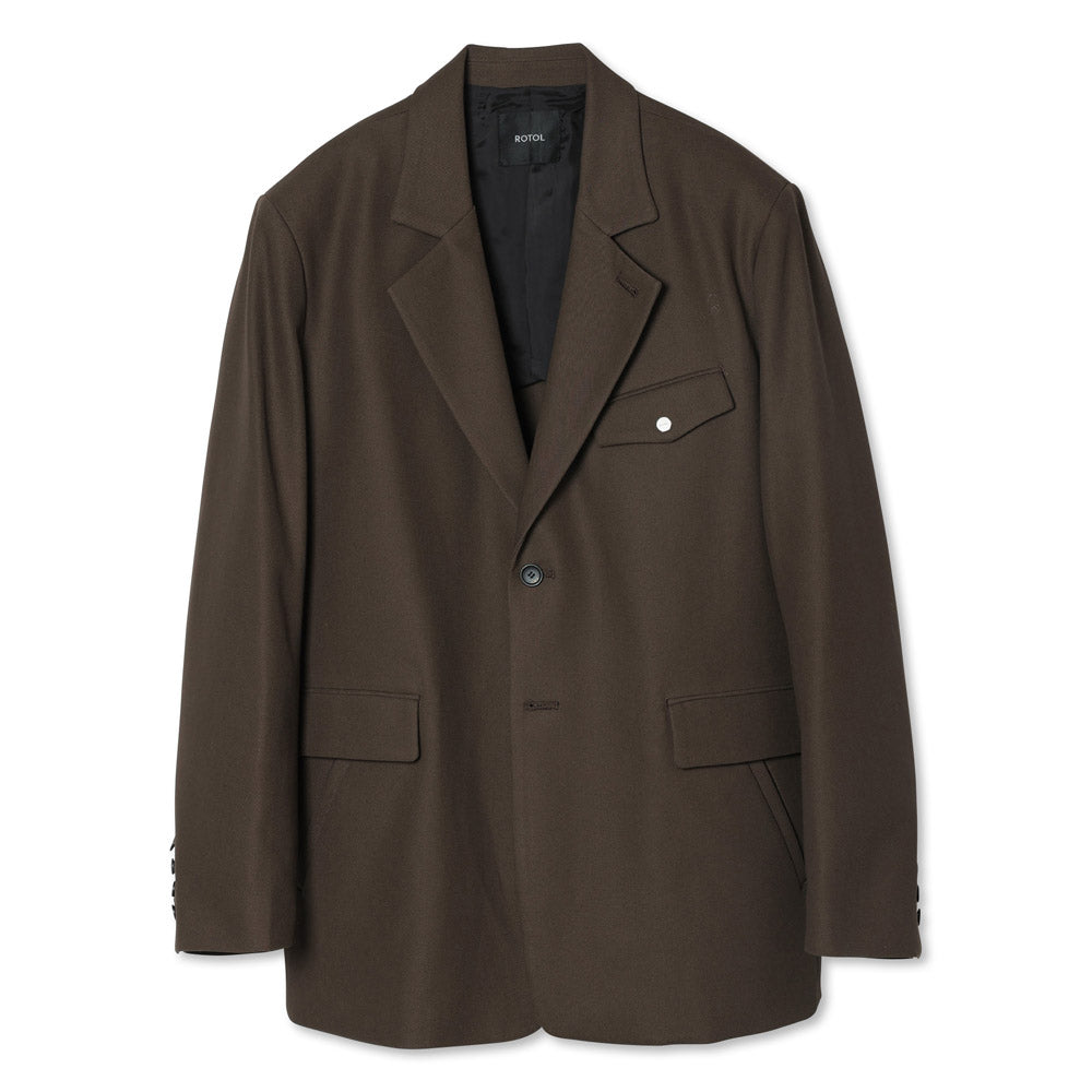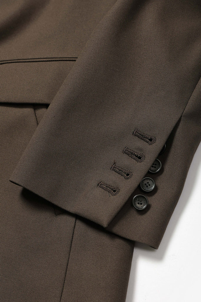 コットンサージ素材ので仕立てたリラックスフィットのシングルテーラードジャケット。