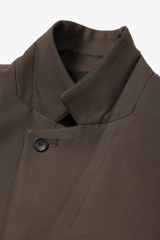 スタンドカラーとしても着用できるよう、襟元にボタンを配備。